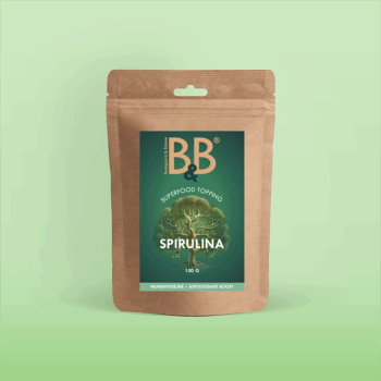 Denne blågrønne mikroalge er kendt for sine mange sundhedsmæssige fordele og kendt som et af naturens mest koncentrerede superfoods. Spirulina er rig på B-vitaminer (især B1, B2, og B3), jern, magnesium, kalium og calcium. Disse er alle essentielle for at opretholde kroppens energiniveau, vitalitet, immunforsvar